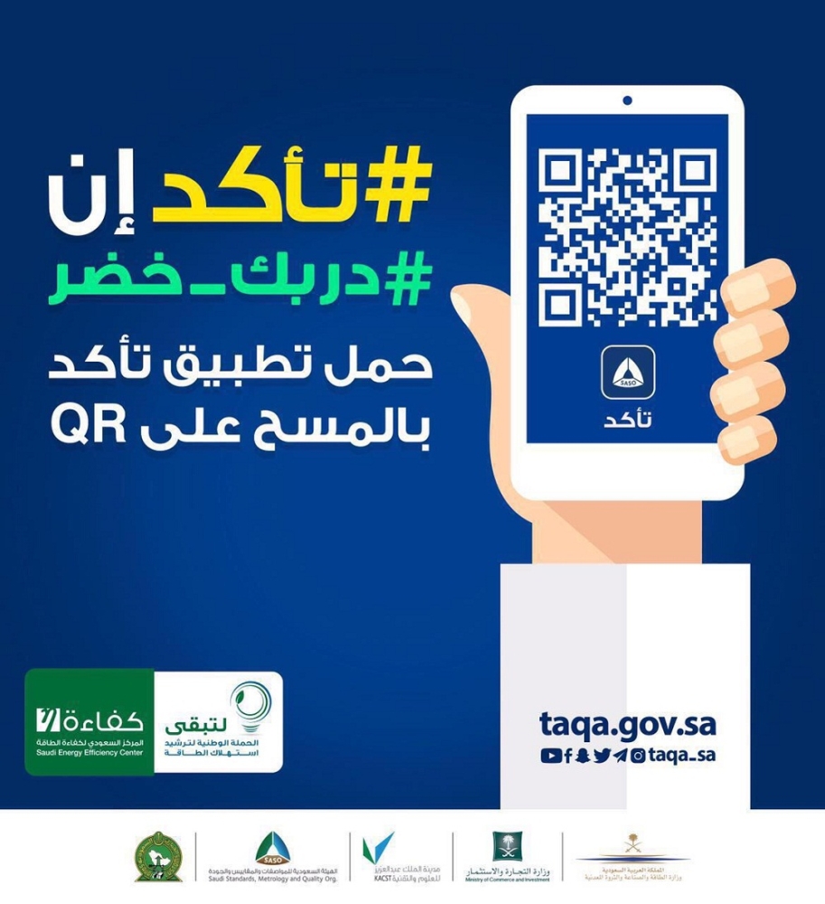 نصحت حملة (#تأكد أن #دربك_خضر) بتحميل تطبيق (تأكد) على الهاتف الجوال، الذي طوّرته الهيئة السعودية للمواصفات والمقاييس والجودة، بالتنسيق مع المركز السعودي لكفاءة الطاقة، بهدف مساعدة المستهلك على التحقق من سريان مفعول علامة الجودة السعودية، وصحة بيانات "بطاقات كفاءة الطاقة على الإطارات" في حال الرغبة بشرائها.