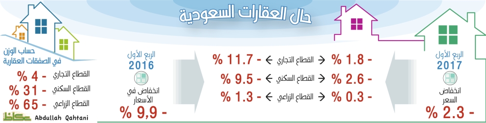 أكد نائب الرئيس للأعمال الإحصائية في الهيئة العامة للإحصاء عبدالله الباتل انخفاض القطاع العقاري بنسبة 14.4% منذ العام 2014 إلى الربع الأول من عام 2017، مؤكدا أن هذا الانخفاض كبير مقارنة بالفترة المحددة، وأضاف: «نسبة دقة الرقم القياسي لأسعار العقارات تتجاوز 95%».