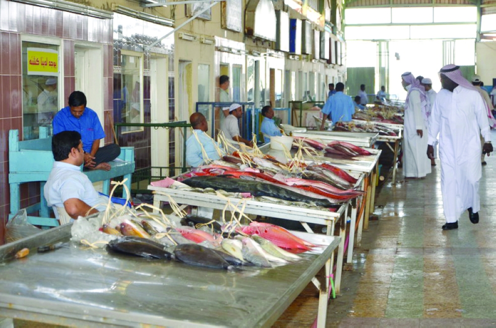 الأسماك معروضة للبيع بسوق السمك المركزية بينبع أمس.