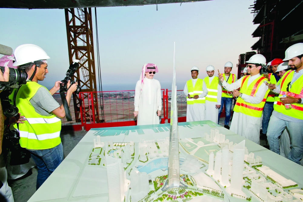 واطلع الأمير الوليد بن طلال على أعمال المنشآت الخرسانية العملاقة لمشروع برج جدة بوتيرة نشطة، بعد أن وصل ارتفاعه حتى الآن إلى الطابق 54، وذلك في إطار اهتمامه بتقدم عمل المشروع الذي لفت انتباه العالم.