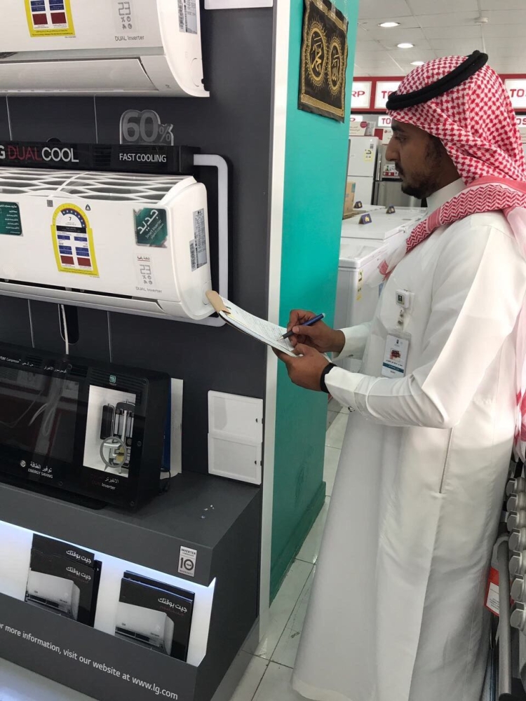 نفّذت الفرق الرقابية لوزارة التجارة والاستثمار بالتعاون مع الهيئة السعودية للمواصفات والمقاييس والجودة والمركز السعودي لكفاءة الطاقة "3198" زيارة تفتيشية استمرت لمدة أسبوع وشملت مختلف مناطق المملكة على منافذ بيع (المكيفات، الغسالات، الثلاجات والمجمدات)، للتأكد من الالتزام بوجود بطاقة كفاءة الطاقة حسب المواصفات والمقاييس السعودية، ونتج عن ذلك ضبط ومخالفة مجموعة من المنتجات.