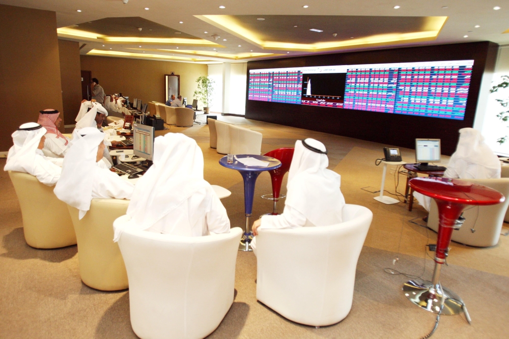 متداولون في إحدى صالات الأسهم. (عكاظ)