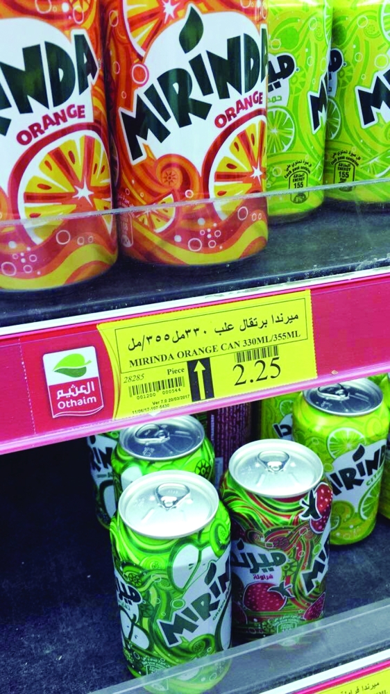 عبوات مشروبات غازية بعد تطبيق الأسعار الجديدة للضريبة.