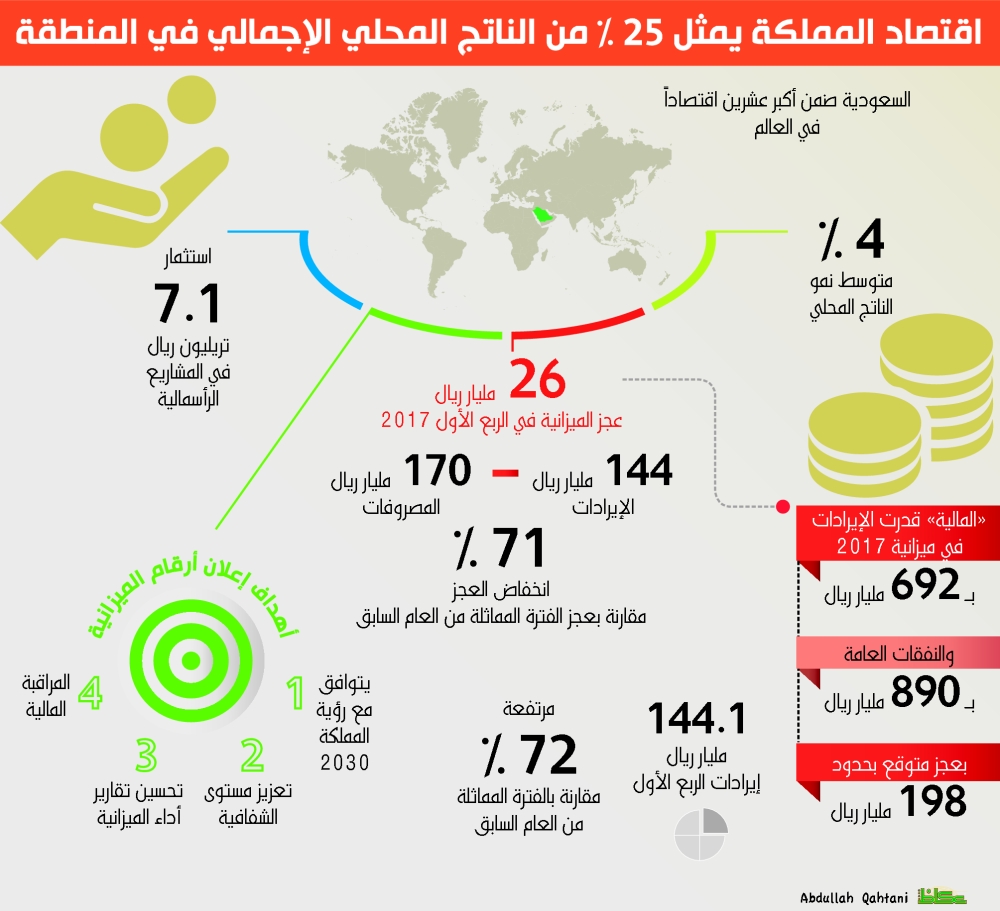 وفي ما يتعلق بموازنة الربع الثاني للعام الحالي 2017، قال الجدعان في مقابلة مع قناة «العربية»، على هامش قمة مجموعة دول العشرين في هامبورغ بألمانيا: «عجز الميزانية في الربع الثاني لا يزال أقل من المتوقع، لكنه اقترب من التعادل مع التوقعات، كما أن الإنفاق في ميزانية الربع الثاني أقل من التوقعات والإيرادات أعلى، وأتوقع نموا اقتصاديا معتدلا يزداد في عامي 2019 و2020».