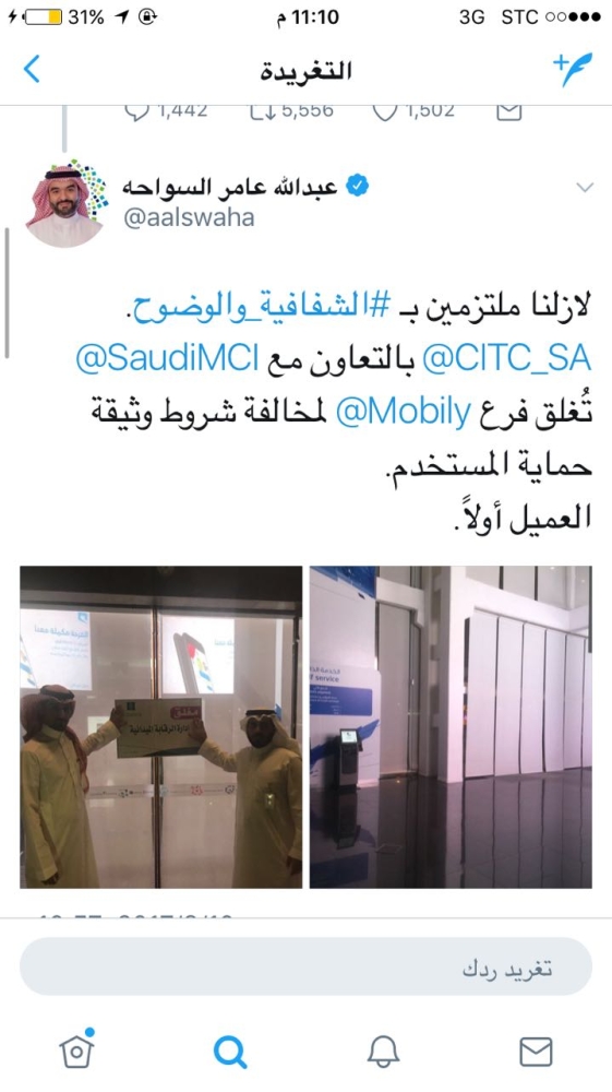 وشددت الهيئة على عدم التهاون في اتخاذ ما يلزم تجاه مخالفات نظام الاتصالات ولائحته التنفيذية وقرارات الهيئة، إذ غرد وزير الاتصالات وتقنية المعلومات عبدالله السواحة قائلاً: «لا زلنا ملتزمين بالشفافية والوضوح.. والعميل أولاً».