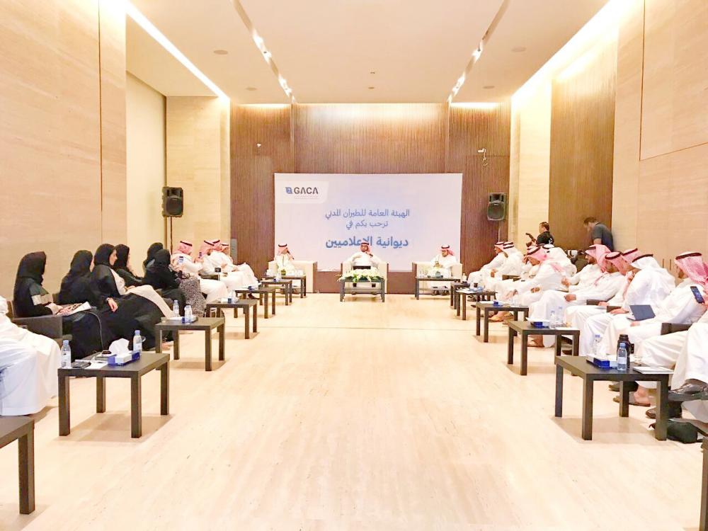مساعد رئيس هيئة الطيران المدني خلال لقاء ديوانية الإعلاميين في الرياض. (عكاظ)