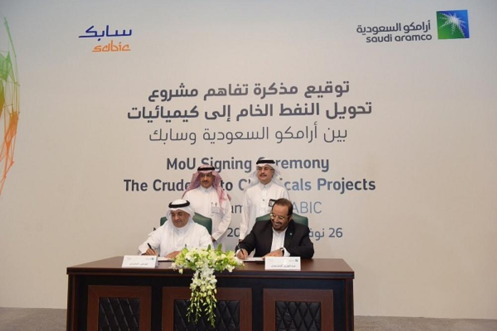 وقّعت أرامكو السعودية وشركة سابك اليوم (الأحد) مذكرة تفاهم لتطوير مجمعٍ صناعي متكامل لتحويل النفط الخام إلى كيميائيات في المملكة العربية السعودية، بحضور رئيس أرامكو السعودية وكبير إداريتيها التنفيذيين، المهندس أمين حسن الناصر، وحضور نائب رئيس مجلس إدارة «سابك» الرئيس التنفيذي يوسف بن عبدالله البنيان وذلك في مقر شركة ارامكو بالظهران.