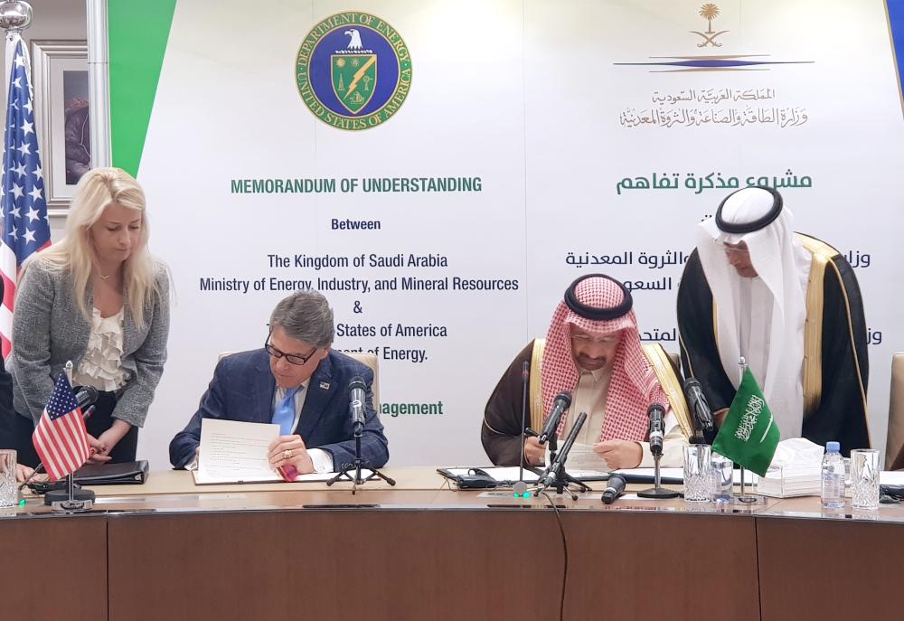 من جهته، أكد وزير الطاقة الأمريكي رك بيري أن السعودية والولايات المتحدة تنطلقان إلى مرحلة جديدة من الشراكة في عالم الطاقة. وقال خلال توقيعه على مذكرة تفاهم تهدف إلى تعزيز آفاق التعاون بين البلدين في مجالات الوقود الأحفوري النظيف وإدارة الكربون أمس (الإثنين): مذكرة التفاهم التي وقعت بين السعودية وأمريكا ترسم أبعاد تحالف مستقبلي لا ينحصر فحسب في مجالات تقنيات غاز ثاني أكسيد الكربون.