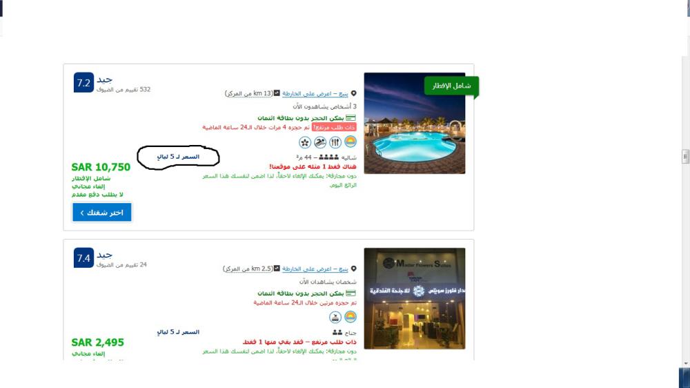 وبلغت أسعار الفنادق والشقق الفندقية في محافظة أبها ما بين 3 آلاف ريال إلى حوالى 6200 ريال، لفئة الخمسة نجوم لمدة إقامة تبلغ خمس ليال. ووصلت أسعار الفنادق في محافظة ينبع التابعة لمنطقة المدينة المنورة إلى أرقام قياسية، مقابل الإقامة في منتجع لمدة 5 ليال من فئة الخمس نجوم، إذ بلغت نحو 10750 ريالا، في حين تبدأ الأسعار في فنادق ينبع لفئة الخمسة نجوم لمدة 5 ليال من 2400 ريال.