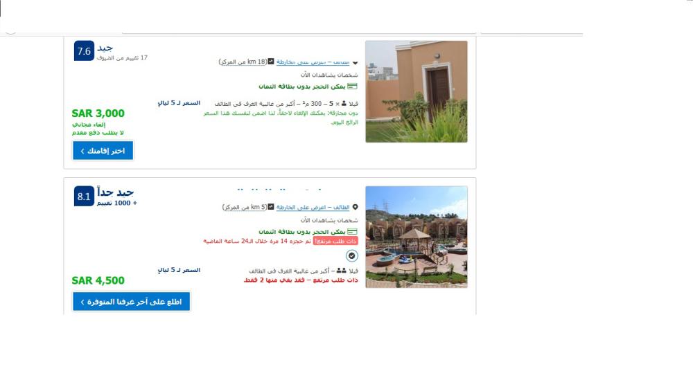 وأشارت النتائج إلى أن أسعار الفنادق في محافظة الطائف، التي تعتبر من أهم المدن السياحية في السعودية؛ بسبب طقسها المتميز طيلة أيام العام تراوح ما بين 3 آلاف ريال كحد أدنى لفئة الخمسة نجوم، إلى نحو 5600 ريال كحد أقصى لمدة خمس ليال.