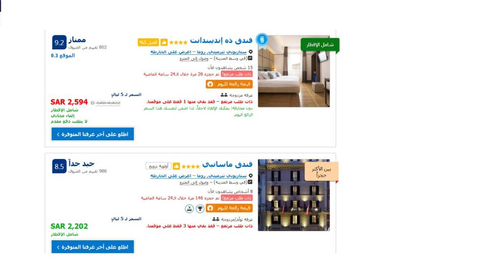 في حين كشفت نتائج الرصد أن أسعار الفنادق في جزيرة (بينانيغ) التابعة لمملكة ماليزيا تراوح ما بين 890 - 2200 ريال، لمدة خمس ليال، وأن حجز فنادق في مدينة (إسطنبول) التركية، في فئة الخمسة نجوم لنفس المدة يبلغ ما بين 950 - 1800 ريال، بينما تصل أسعار الفنادق لفئة الخمسة نجوم لنفس المدة أيضا في مدينة روما الإيطالية إلى ما بين 2000 -2800 ريال.