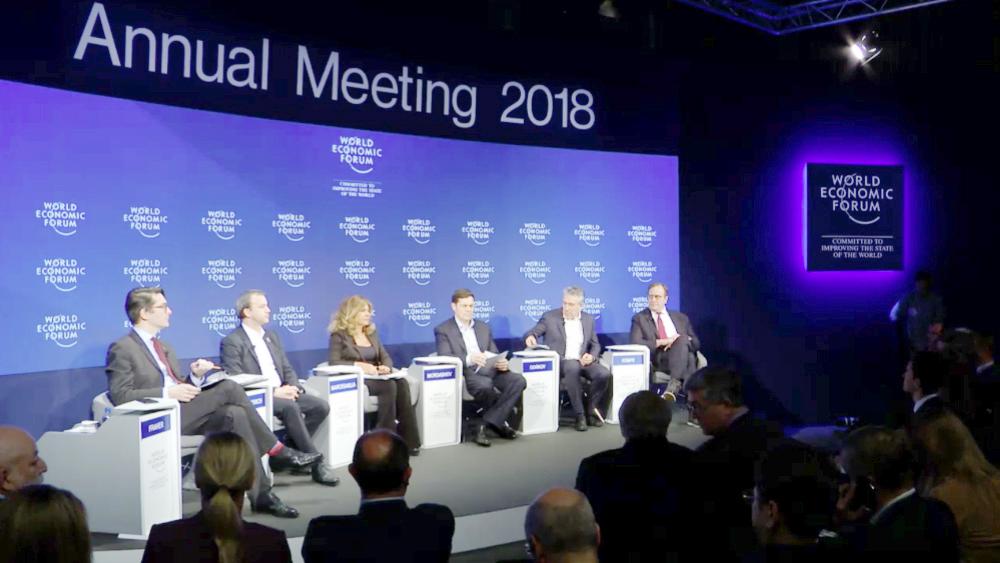 جانب من جلسات المنتدى الاقتصاد العالمي في دافوس أمس (الخميس).