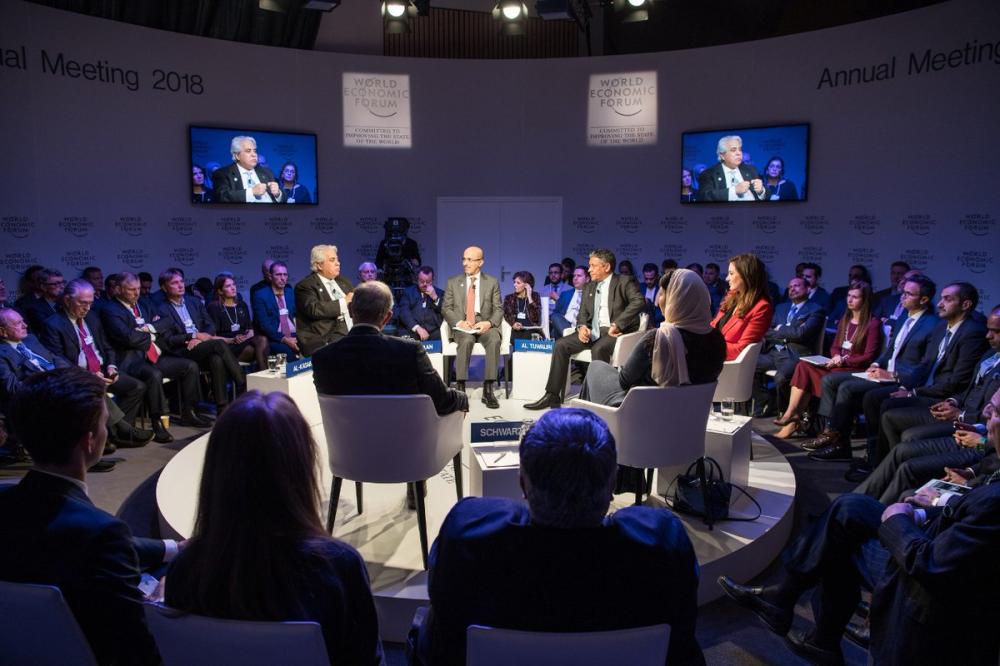 شارك وزير المالية محمد بن عبد الله الجدعان، في المنتدى الاقتصادي العالمي «دافوس»، الذي عُقد بسويسرا خلال الفترة من 23-26 يناير 2018، ضمن وفد المملكة الذي ضم عدداً من أصحاب السمو والوزراء ورؤساء الشركات السعودية الكبرى، وكبار رجال الأعمال السعوديين.