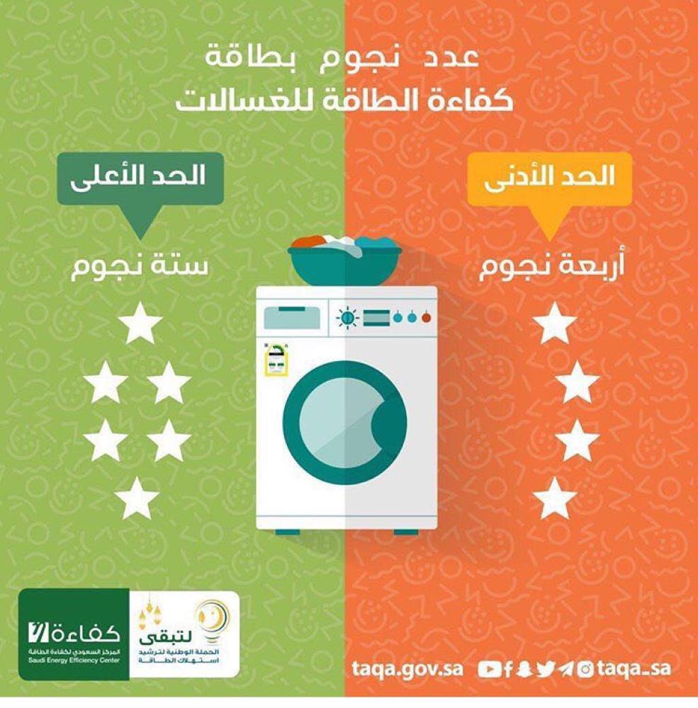 وتؤكد "بطاقة كفاءة الطاقة" الخاصة بالغسالات أن الحد الأدنى لعدد النجمات هو أربع نجمات، وكلما كلما زاد عدد النجوم زاد مستوى الكفاءة في استهلاك الكهرباء.