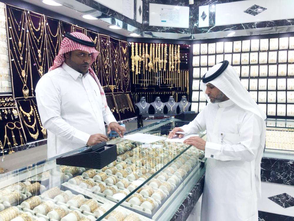 مفتش وزارة العمل في أحد محلات الذهب. (عكاظ)
