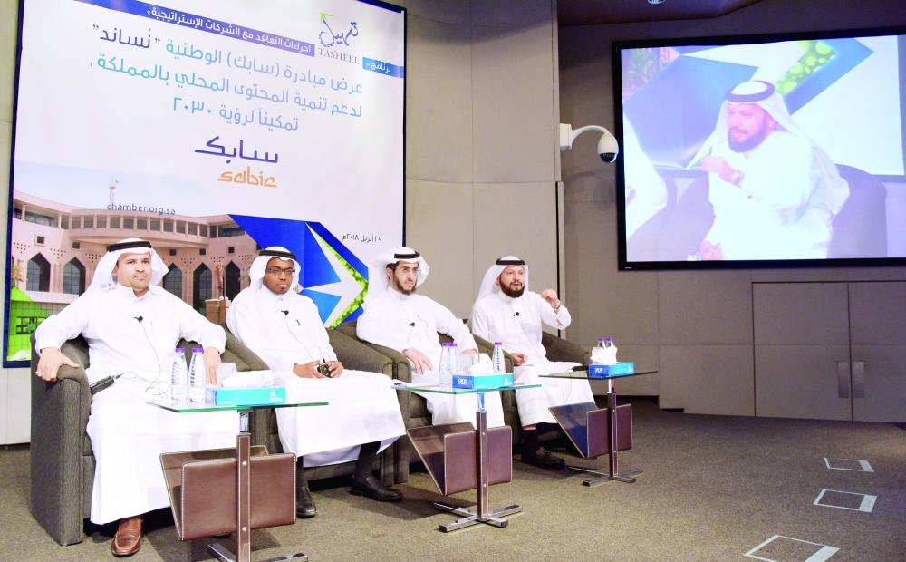 جاء ذلك خلال الدورة الثالثة لبرنامج إجراءات التعاقد مع الشركات الإستراتيجية «تسهيل»، الذي أطلقته غرفة تجارة وصناعة الشرقية أمس (الأحد)؛ لعرض مبادرة سابك الوطنية لدعم تنمية المحتوى المحلي بالسعودية (نساند) تمكينا لرؤية السعودية 2030.