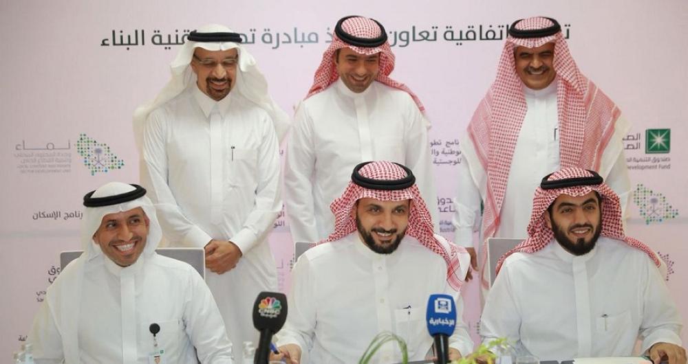 شهد وزير الطاقة والصناعة والثروة المعدنية المهندس خالد الفالح ووزير الإسكان ماجد الحقيل توقيع اتفاقية تعاون بين الصندوق الصناعي وبرنامج تطوير الصناعة الوطنية والخدمات اللوجستية وبرنامج الإسكان لتنفيذ مبادرة تحفيز تقنية البناء.