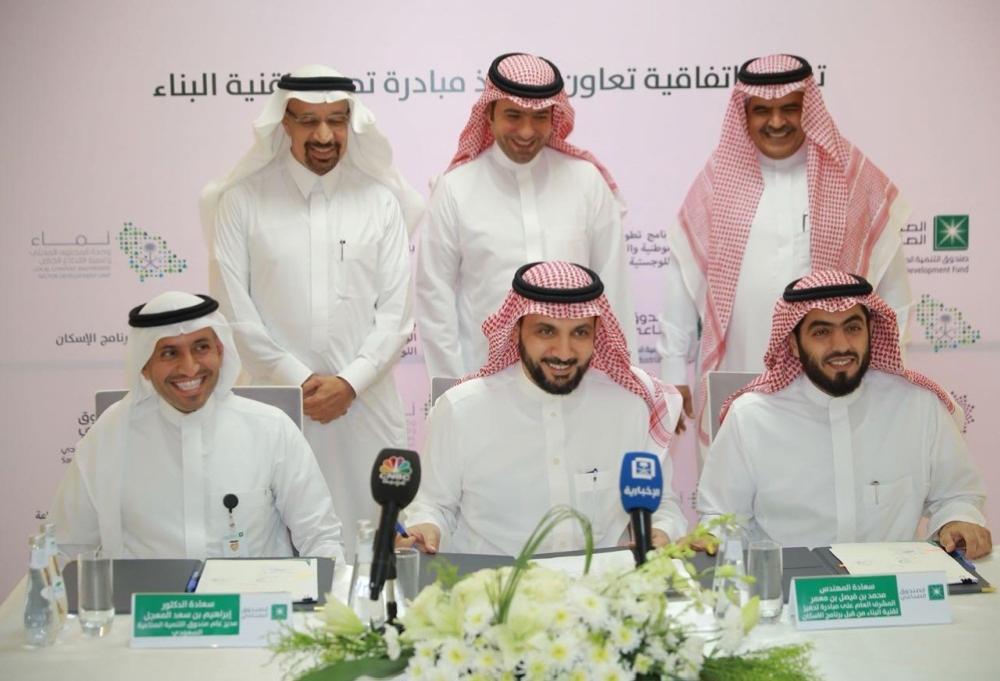 وقع الاتفاقية لتنفيذ مبادرة تحفيز تقنية البناء كل من وكيل وزارة الطاقة والصناعة والثروة المعدنية مسؤول برنامج تطوير الصناعة والخدمات اللوجستية الدكتور عابد السعدون، والمشرف العام على مبادرة تحفيز تقنية البناء من قبل برنامج الإسكان بوزارة الإسكان المهندس محمد بن معمر، ومدير عام صندوق التنمية الصناعية السعودي الدكتور إبراهيم المعجل, وبحضور وزير الطاقة والصناعة والثروة المعدنية المهندس خالد بن عبد العزيز الفالح وزير الإسكان الأستاذ ماجد بن عبدالله الحقيل، ورئيس وحدة المحتوى المحلي وتنمية القطاع الخاص الأستاذ فهد السكيت.