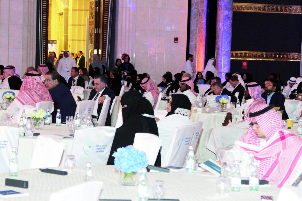 نساء ورجال جلوس على طاولات واحدة في المنتدى. (تصوير: فيصل مجرشي)