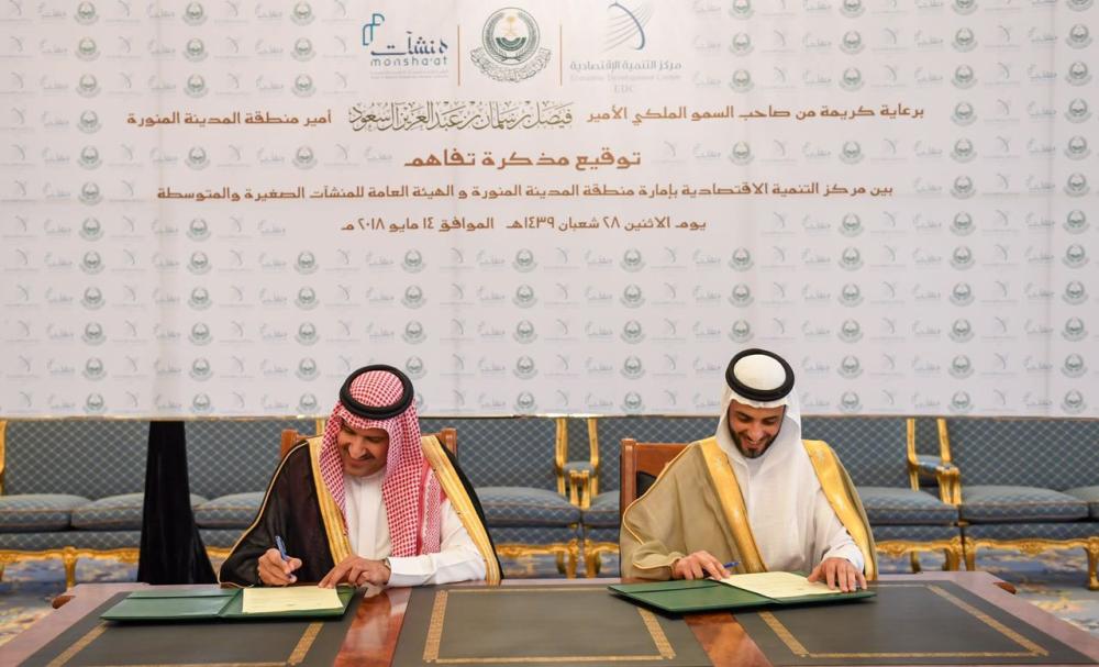 وقع أمير منطقة المدينة المنورة الأمير فيصل بن سلمان، مع محافظ الهيئة العامة للمنشآت الصغيرة والمتوسطة المهندس صالح بن إبراهيم الرشيد مذكرة تفاهم لتطوير بيئة الأعمال بالمنطقة من خلال مركز التنمية الاقتصادية، ودعم وتشجيع ريادة الأعمال والابتكار وتنظيم الفعاليات المتعلقة بها، وتأسيس مجلس رواد الأعمال والمنشآت الصغيرة والمتوسطة بالمنطقة بعضوية دائمة من الهيئة، والمساهمة في تنمية تلك المنشآت والاستفادة من الفرص الاستثمارية المتاحة لها بالمنطقة.