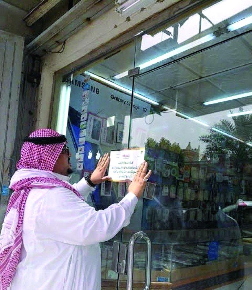إغلاق أحد المحلات المخالفة. (عكاظ)