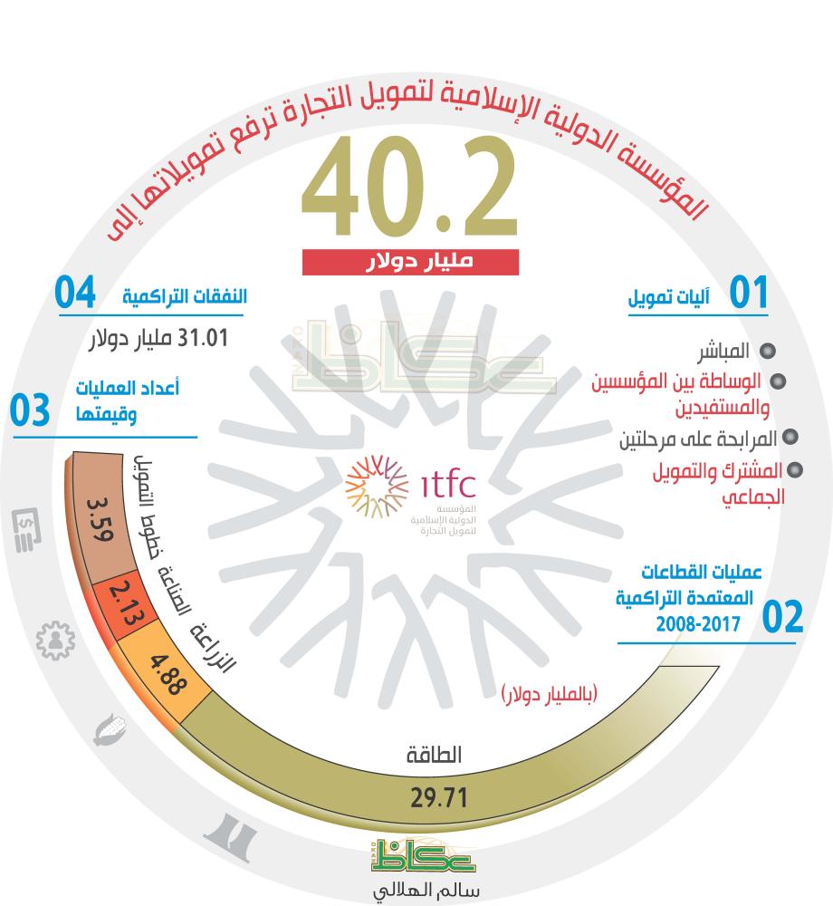 كشف الرئيس التنفيذي للمؤسسة الدولية الإسلامية لتمويل التجارة «itfc» المهندس هاني سالم سنبل لـ«عكاظ» أن المؤسسة استطاعت رفع حجم تمويلاتها إلى نحو 40.2 مليار دولار (150.75 مليار ريال)، دون تسجيل نسبة تذكر في تعثر الديون، منذ بدء إنشائها في يناير 2008، مع الطموح لزيادة التمويلات إلى 45 مليار دولار خلال العام الحالي 2018. وأكد في حواره لـ«عكاظ» أن المؤسسة تعكف مع وزارة التجارة والاستثمار، من خلال برنامج متخصص توضع اللمسات الأخيرة عليه، يدعم المنشآت الصغيرة والمتوسطة للدخول في أسواق المال، والحصول على التمويلات اللازمة، إضافة إلى برنامج عشري جديد من 2015-2025 يستهدف رفع التجارة بين الدول الأعضاء إلى 25%.