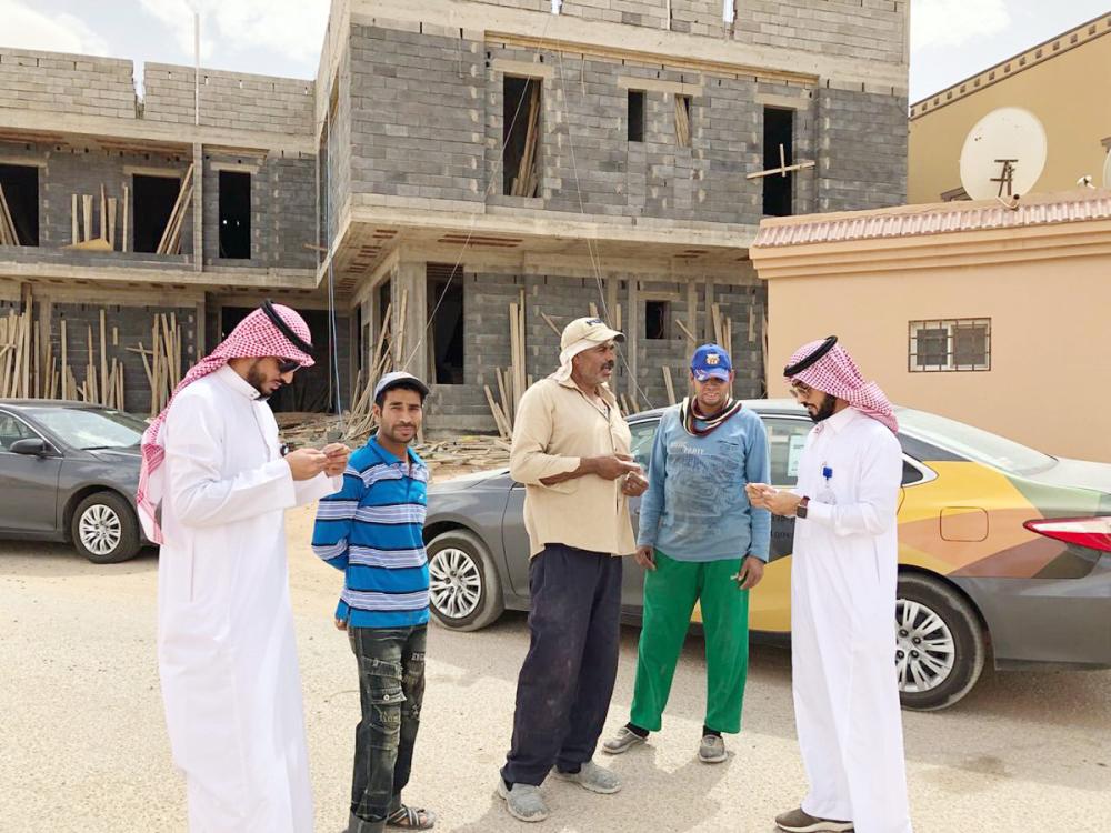 مفتشو وزارة العمل خلال الجولات الميدانية في القصيم. (عكاظ)