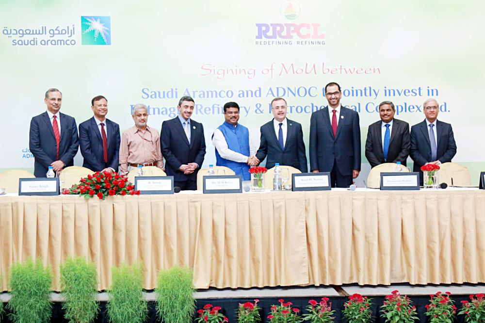 وبين الناصر، خلال توقيع أرامكو وشركة بترول أبوظبي الوطنية «أدنوك» أمس، اتفاقا يسمح للشركة الإماراتية بالمشاركة في مصفاة تكرير النفط الخام المقترح إنشاؤها في غرب الهند، أن الشركة تريد الحضور في كامل سلسلة القيمة بقطاع الطاقة الهندي، لافتا إلى أن الشركة تنظر في كل الخيارات لدخول قطاع تجزئة الوقود من خلال شراكات مع شركات نفط هندية. وتوقع وزير النفط الهندي دارميندرا برادان -حسبما أوردت «رويترز»- بدء الإنتاج من المصفاة في 2022.