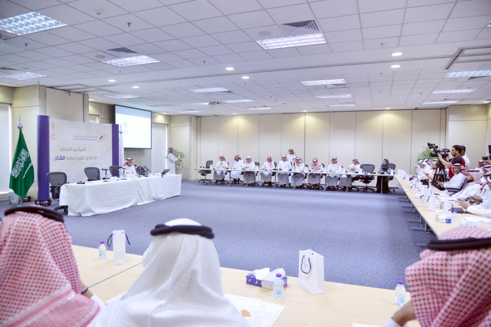 جانب من المؤتمر الصحفي عقب إطلاق تطبيق «مقياس». (تصوير: ماجد الدوسري)