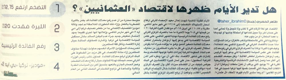 واستبقت «عكاظ» التطورات المتلاحقة، ودعوة الأتراك بإخراج «ما تحت البلاطة» في مادة نشرتها بتاريخ 7 يونيو الماضي. وطرحت مجموعة من التكهنات والتساؤلات، أجابت عنها الأيام القليلة الماضية، شملت سياسة المصرف المركزي التركي في رفع معدلات الفائدة، التي على العكس من السياسة الاقتصادية التي يدعو إليها الرئيس رجب أردوغان باستمرار لخفض الفائدة، وهل سيصعد التضخم إلى أكثر مما وصل إليه قبيل الانتخابات الرئاسية، أم أن «الملفات الخارجية» التي أقحمت نفسها فيها تركيا تسببت في هذا الترنح المفاجئ؟