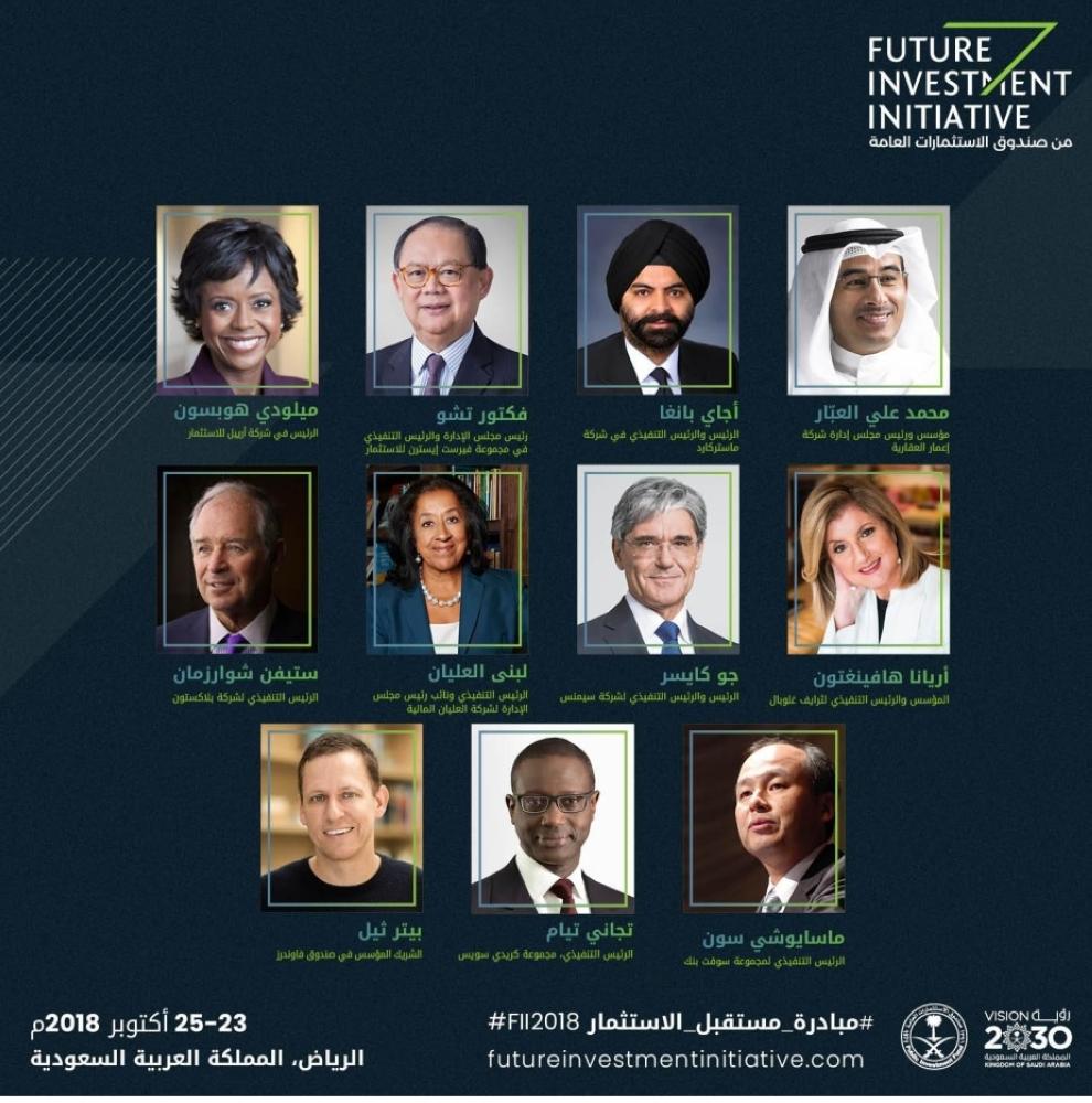 كشف صندوق الاستثمارات العامة اليوم (الأربعاء) تشكيل المجلس الاستشاري لمبادرة مستقبل الاستثمار للعام 2018، الذي يضم 11 رئيساً تنفيذياً من مختلف دول العالم وذوي تأثير كبير في قطاع التقنية والمال والأعمال، الذين يسهمون في التطوير المستمر لبرنامج المبادرة.