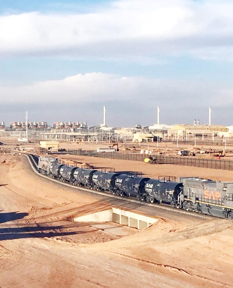 «سار» تُكمل ربط مدينة وعد الشمال وتُشغِّل قطارات نقل الكبريت المصهور. (عكاظ)