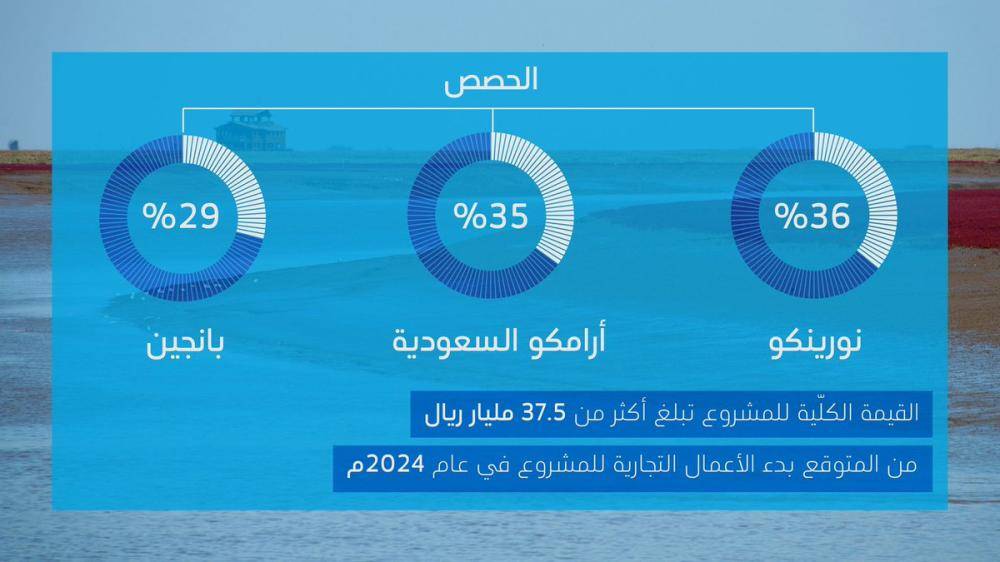 وقال البيان إن أرامكو ستملك 35 بالمئة من الشركة الجديدة فيما ستملك نورينكو وبانجين سينشين 36 بالمئة و29 بالمئة بالترتيب.