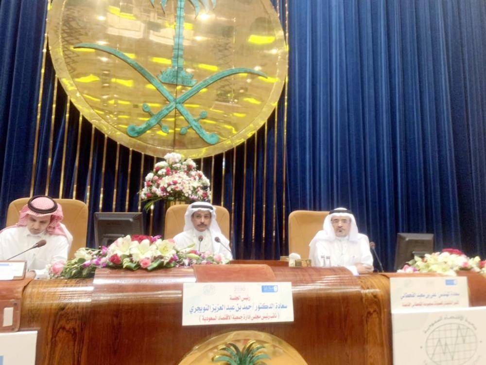 ورأس جلسة «سوق العمل السعودي في ظل تبادل الأدوار بين القطاع الخاص والقطاع العام» نائب رئيس مجلس إدارة جمعية الاقتصاد السعودية الدكتور حمد التويجري، وشارك فيها وكيل وزارة العمل والتنمية الاجتماعية للسياسات العمالية الدكتور أحمد الزهراني، والمدير التنفيذي للعمليات بمجموعة القحطاني القابضة المهندس علي بن سعيد القحطاني.