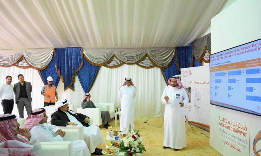 كما استعرض الدكتور سندي نطاق المشروع، الذي يهدف إلى إيصال خدمة النطاق العريض إلى 11958 منزلاً في أربعة أحياء في حائل، هي: (حي البحيرة بواقع 557 منزلاً، و3067 منزلاً في حي الخماشية، و4064 منزلاً في حي السمراء، و4270 منزلاً في حي الزبارة).