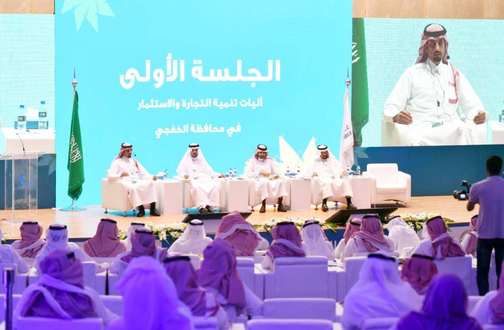 المشاركون في الجلسة الأولى لمنتدى الخفجي للاستثمار أمس. (عكاظ)