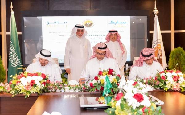 أُبرمت اليوم (الخميس) في مدينة ينبع الصناعية، مذكرة تفاهم بين الهيئة الملكية للجبيل وينبع وكل من الشركة السعودية للصناعات الأساسية (سابك) وشركة «مرافق»، لدراسة إنشاء محطة للطاقة الشمسية الكهروضوئية بمدينة ينبع الصناعية، التي ستكون حال إنشائها أول مشروع ضخم للطاقة المتجددة ينفذه القطاع الخاص في المملكة، بحضور الرئيس التنفيذي للهيئة الملكية بينبع المهندس عدنان العلوني، ونائب رئيس مجلس إدارة سابك الرئيس التنفيذي لشركة سابك يوسف البنيان والرئيس التنفيذي لشركة مرافق المهندس عبد الله البوعينين.