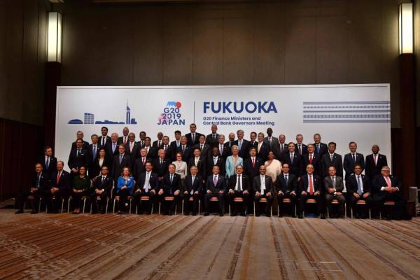 ويبحث وزراء مالية ومحافظو البنوك المركزية لأكبر 20 اقتصادا في العالم شؤون الاقتصاد في مدينة فوكوكا اليابانية وسط توتر تجاري متزايد بين أكبر اقتصادين في العالم وهما الولايات المتحدة والصين.