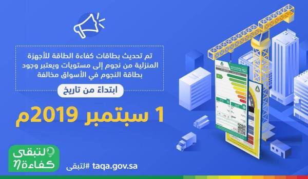 وكانت الوزارة، دعت في 24 مارس الماضي، المنشآت والأسواق والمراكز ومنافذ البيع إلى الالتزام بإيقاف تداول بطاقات كفاءة الطاقة القديمة على الأجهزة الكهربائية والتي تحمل علامة (النجوم) واستبدالها بالبطاقة الجديدة (المستويات)، عن طريق موقع الهيئة السعودية للمواصفات والمقاييس، حيث ستعد البطاقة القديمة مخالفة ابتداء من الأول من سبتمبر 2019.