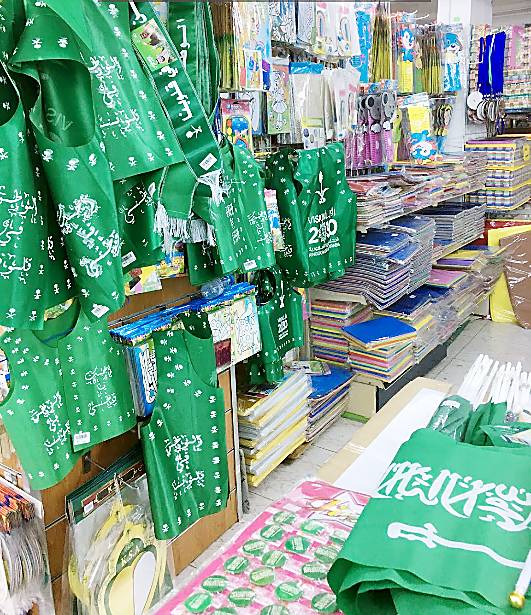 المكتبات وفرت العديد من الأعلام والشعارات الخاصة باليوم الوطني.
