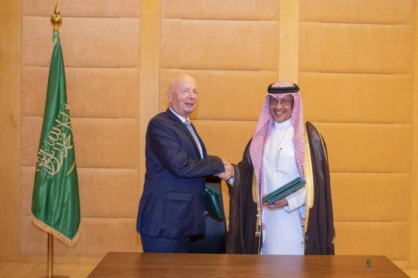 ​عقب ذلك شهد أصحاب السمو والمعالي توقيع اتفاقية بين حكومة المملكة والمنتدى الاقتصادي العالمي لإنشاء فرع لمركز الثورة الصناعية الرابعة للمنتدى الاقتصادي العالمي في المملكة، والذي يعد الخامس على مستوى العالم.