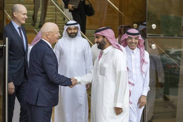 ​وجرى خلال اللقاء مناقشة مجالات التعاون المشتركة بين المملكة العربية السعودية والمنتدى الاقتصادي العالمي.