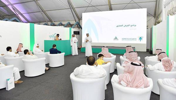 مستفيدو «سكني» يستمعون لشرح عن خدمات وبرامج الصندوق العقاري.