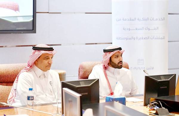 طلعت حافظ وبدر التركي خلال ورشة «الخدمات البنكية المقدمة من البنوك للمنشآت الصغيرة والمتوسطة» بغرفة الشرقية.