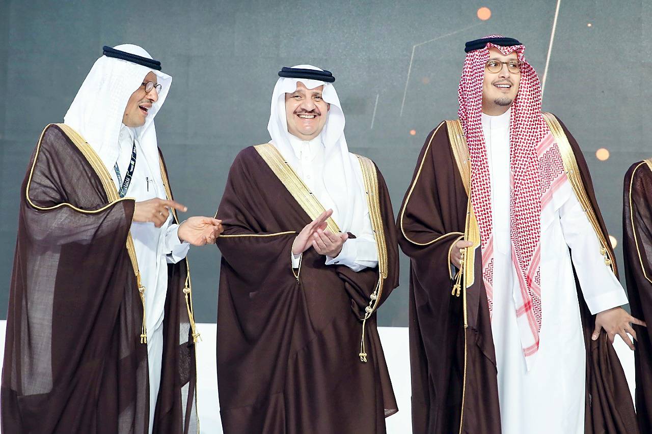 أمير المنطقة الشرقية ووزير الطاقة خلال افتتاح منتدى اكتفاء. (عكاظ)