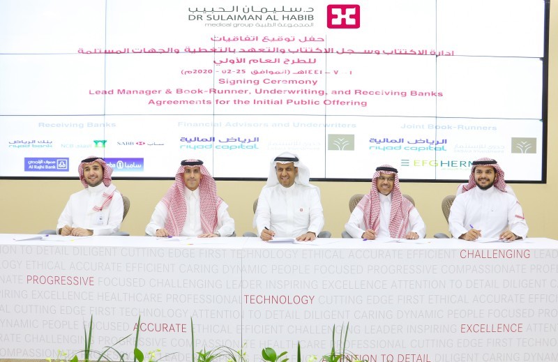 مجموعة سليمان الحبيب خلال توقيع اتفاقات إدارة الاكتتاب مع الجهات المستلمة للطرح الأولي.