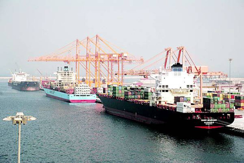 سفن محملة بالبضائع بميناء الجبيل.