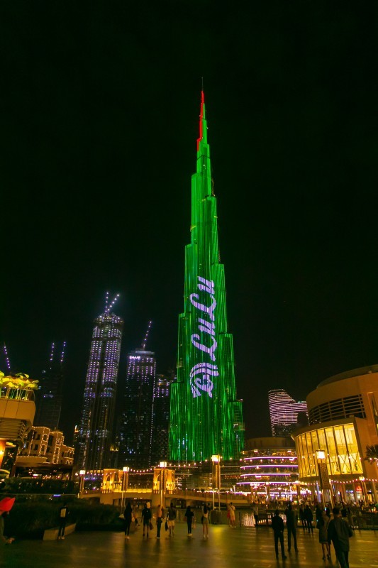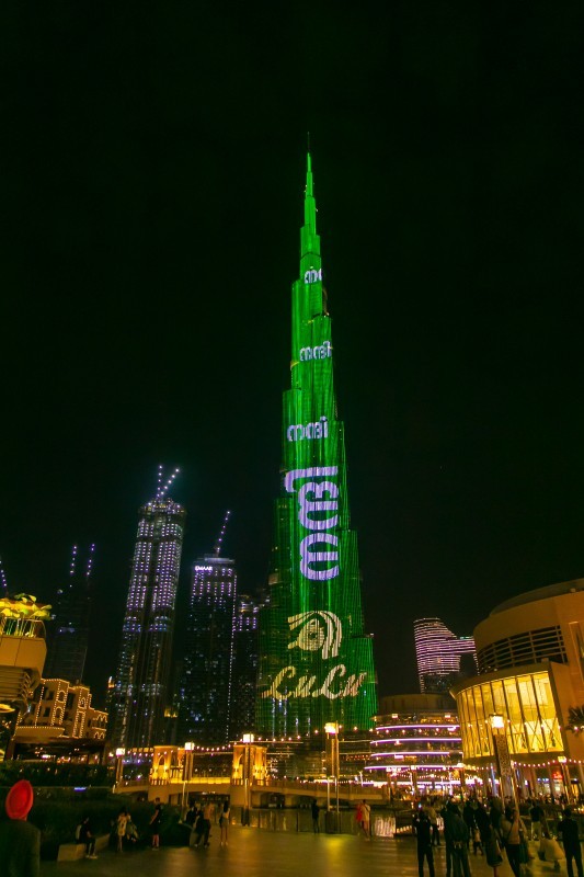 احتفل برج خليفة أطول برج في العالم، بوصول متاجر لولو إلى 200 متجر هايبر ماركت. وشاهد الزوار المتواجدين في الوجهة الشهيرة بدبي وملايين المتابعين حول العالم عبر تقنية البث المباشر، استعراض برج خليفة لألوان شعار متاجر لولو المألوفة على واجهة البرج مع رسائل تهنئة احتفالا بلحظة الفخر.
