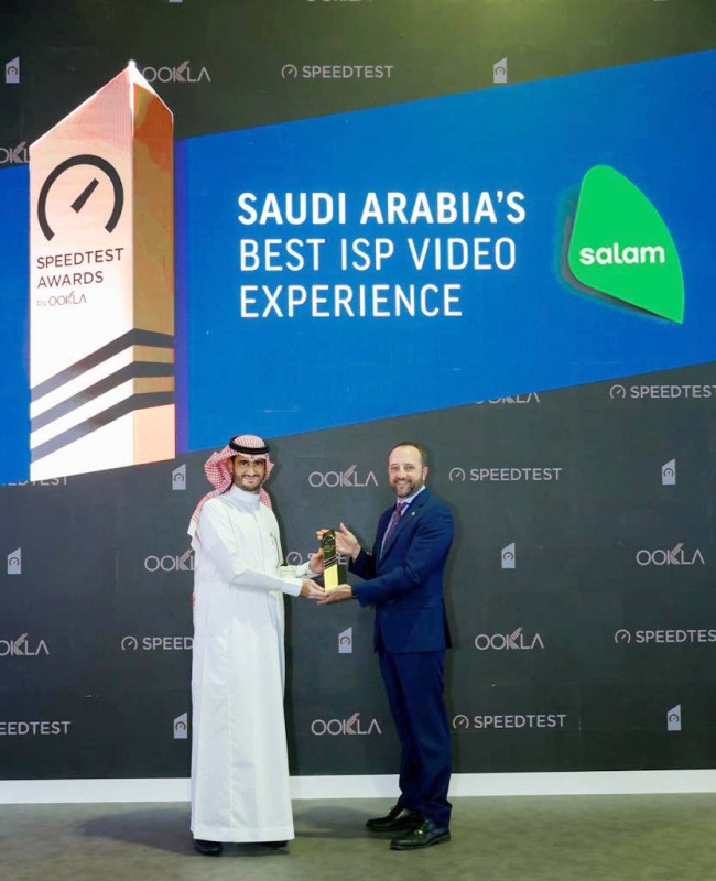 وتسلم الرئيس التنفيذي لشركة «سلام» المهندس أحمد العنقري الجائزة، خلال حفل خاص أقيم على هامش معرض جيتكس جلوبال 2022 في دبي، بحضور دووغ ساتلس، الرئيس التنفيذي لشركة Ookla، إلى جانب عدد من كبار المسؤولين التنفيذيين في شركة «سلام».