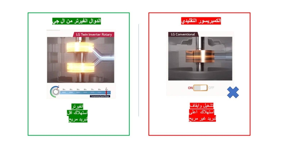 من وجهة نظر تقنية، لكنها بالتأكيد مفيدة. ابحث حول الانفيرتر الخاص بمكيف الهواء الذي ستقوم باختياره، وتأكد من اختيارك من خلال استخدام ضاغط عاكس. تأتي مجموعة مكيفات الهواء من إل جي مع هذه الميزة، والتي تضمن كفاءة أفضل في استخدام الطاقة وتبريد دقيق وعمليات أكثر هدوءاً بشكل عام. والأفضل من ذلك، أن تشكيلة إل جي تأتي مزودة بتقنية الانفيرتر المزدوج، والتي توفر ما يصل إلى 53٪ من الطاقة، وتضمن تبريداً أسرع بنسبة 60٪ من الموديلات التقليدية.